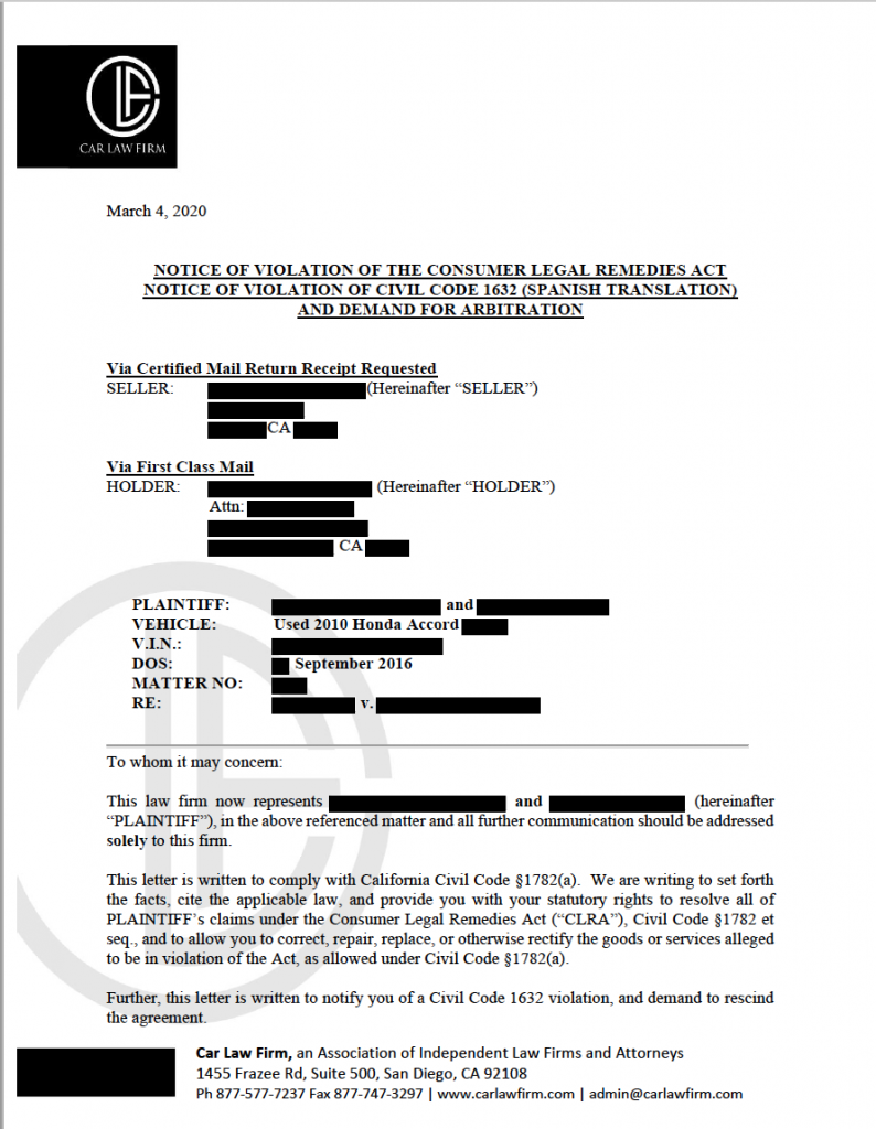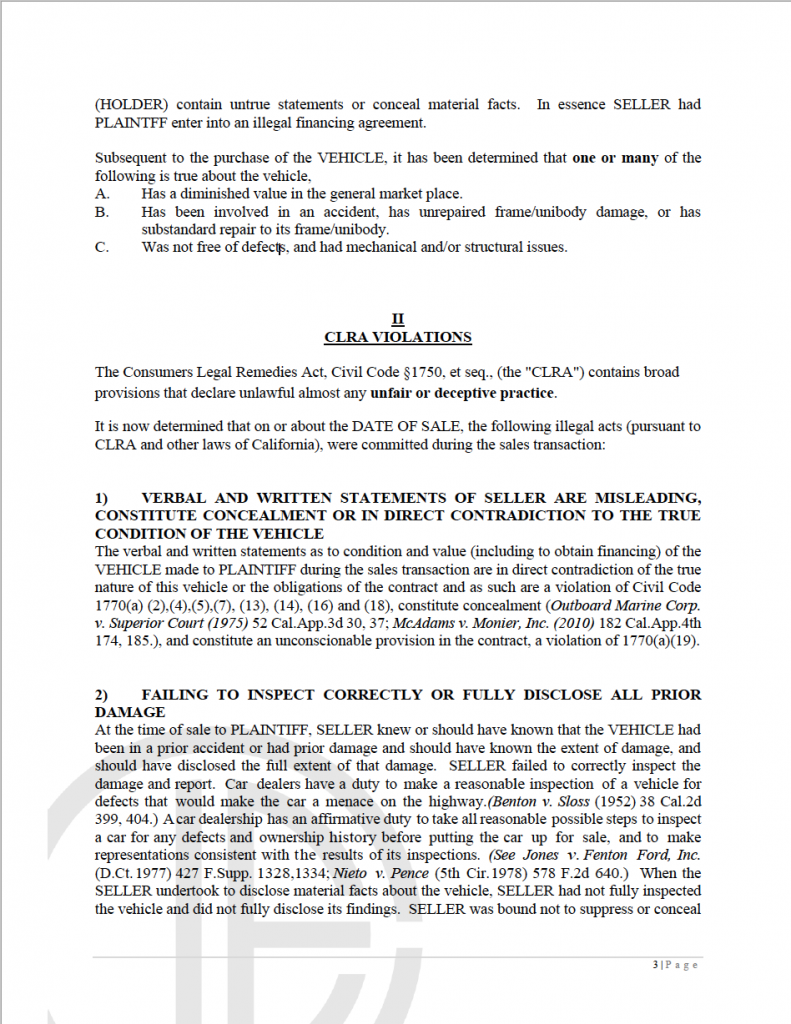 The Car Law Firm, with attorney Kasra Sadr, is just one of hundreds of consumer lawyers who sue California Auto dealers. Sadr is known for primarily targeting dealers for selling cars that have been involved in some sort of accident or sustained frame or structural damage. Recently however, The Car Law Firm has added a number of other claims when suing dealers.